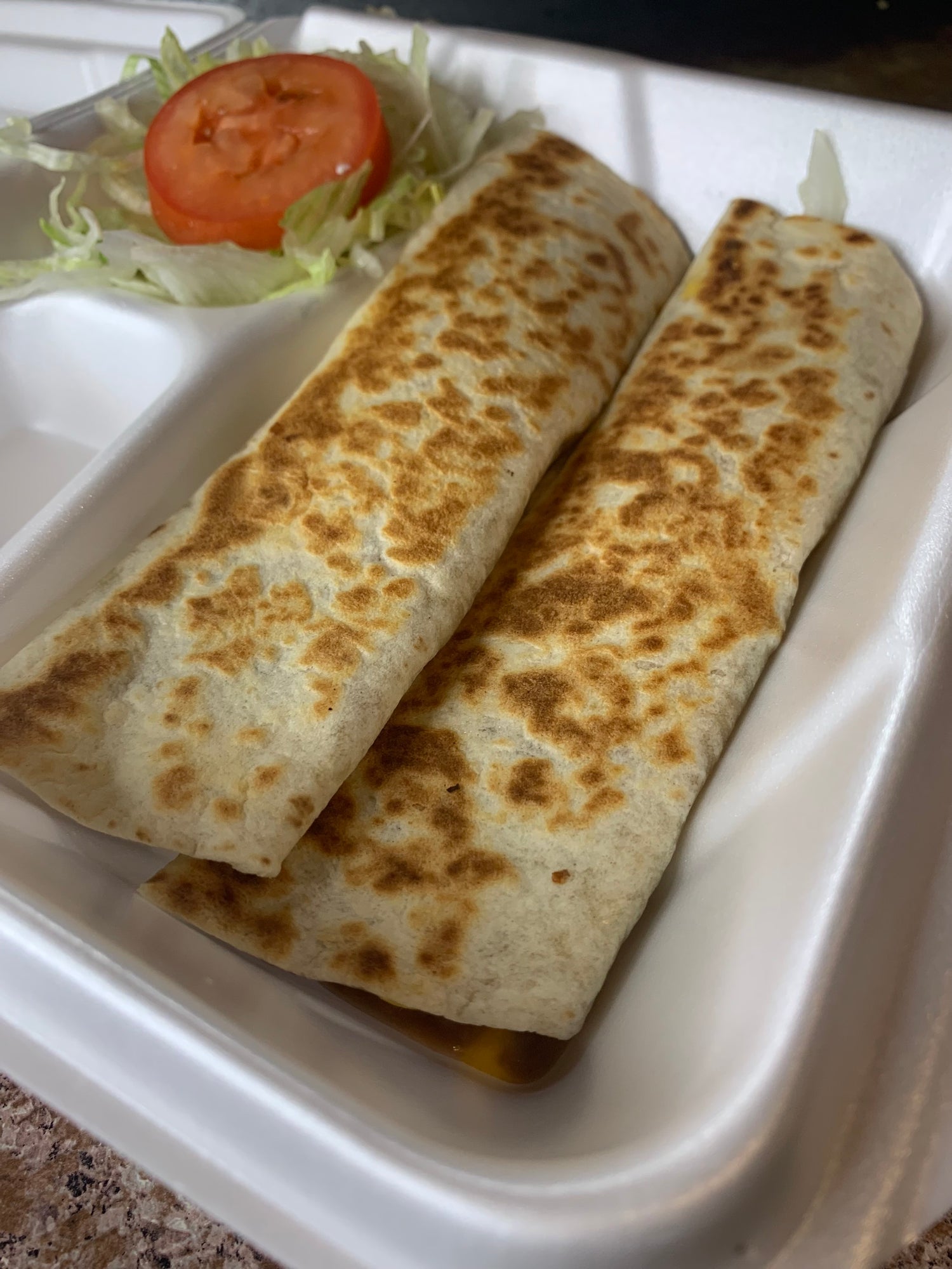 Flour tortilla rolled with your choice of filling, onion, and cheese.