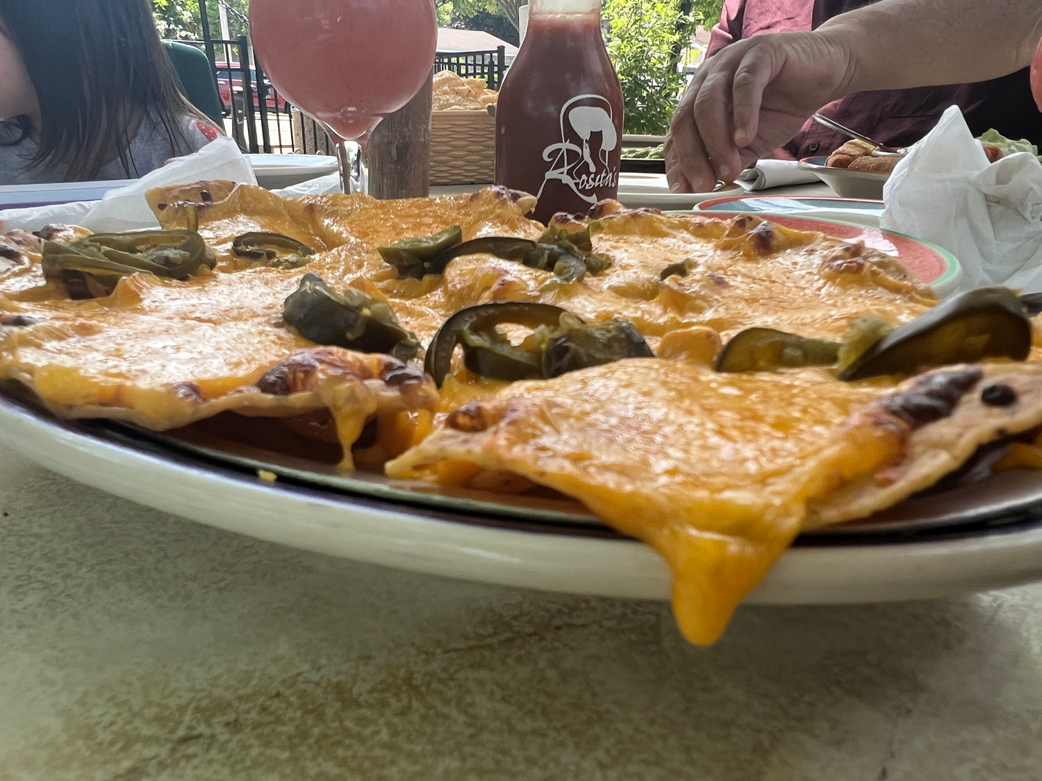 Tortilla chips topped with Monterey Jack cheese sauce, pulled pork, pico de gallo and jalapeños.